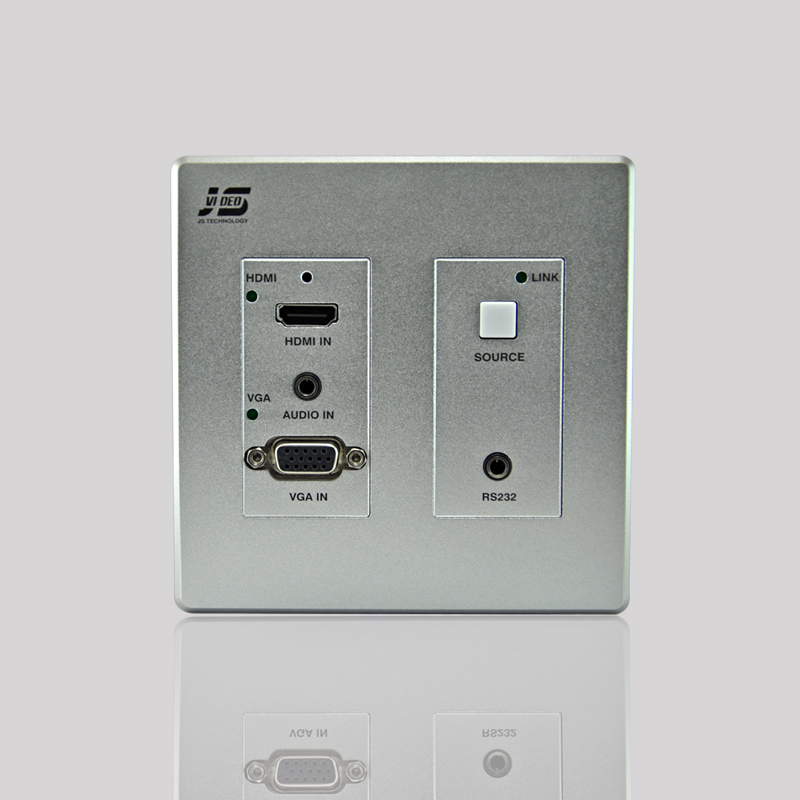 JS-WP200HD墻面接線盒是一款帶高清轉換及長距離傳輸的信息盒,正面連接的 VGA+Audio、HDMI 信號可通過單根 CAT5、5e 及 6 類網線輸出高清視頻信號、音頻信號、傳輸距離 100米,安裝布線便利;?采用了全數字式零壓縮技術,實現了視頻圖像點對點以及音頻的完美傳輸。最高支持 1920x1080P 60Hz 信號;支持 HDCP 解碼(選配),可接藍光播放器,具有高可靠