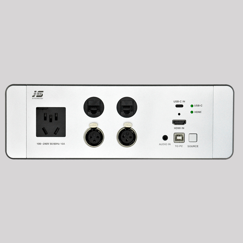 JS-U170HD 可藏式接線盒是一款帶高清轉換及長距離傳輸的適合桌面安裝的滑蓋式接線盒,它前端連接的 VGA、音頻、HDMI 信號可通過單根 6 類網線輸出高清視頻信號、音頻信號、傳輸距離 70M,安裝布線便利;JS-U170HD 采用了全數字式零壓縮技術,實現了視頻圖像點對點以及音頻的完美傳輸。最高支持 1920x1080P 60Hz 信號;支持HDCP 解碼(選配),可接藍光播放器,具有高可