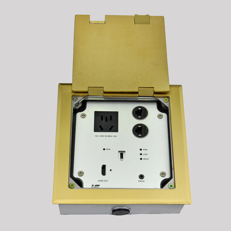 JS-DC100HDRX Floor Box can be used as a receiver for the HDBaseT output from JS Long distance transmit interconnect box, it provides economical means of extending 1080p/ 60Hz video signals up to 100 m