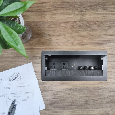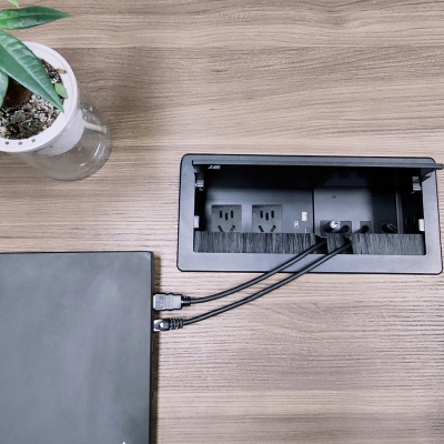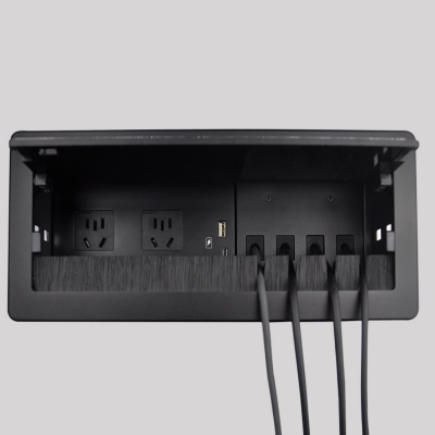 JS-Z400自收式接線盒提供了一個(gè)整潔、緊湊、簡單的連接解決方案,接線盒采用掀蓋式結(jié)構(gòu)設(shè)計(jì),使用時(shí)掀起內(nèi)面板,各種線纜及接口展現(xiàn)出來;線纜采用自收式設(shè)計(jì),使用時(shí)直接拉出線纜連接后即可使用,使用完畢線纜可自動(dòng)收回接線盒內(nèi),實(shí)現(xiàn)了開會(huì)簡單入手、閉會(huì)就走,使整個(gè)會(huì)議桌面整潔、有序。
